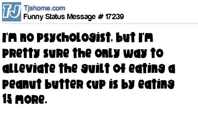 X I'm no psychologist, but I'm pretty sure the only way to alleviate the guilt of eating a peanut butter cup is by eating 15 more.