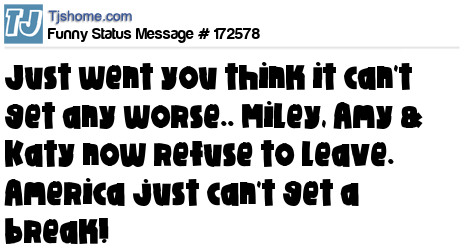 X says Just went you think it can't get any worse.. Miley, Amy & Katy now refuse to leave. America just can't get a break!
