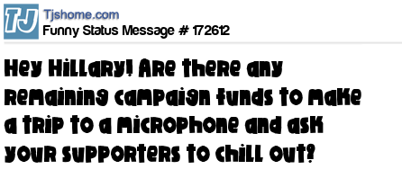X Hey Hillary! Are there any remaining campaign funds to make a trip to a microphone and ask your supporters to chill out?