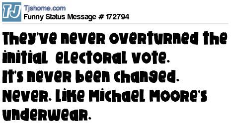 X They've never overturned the initial electoral vote. It's never been changed. Never. Like Michael Moore's underwear.