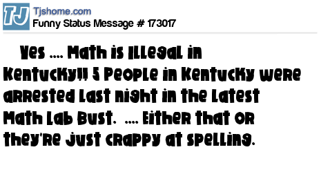 X says Yes .... Math is Illegal in Kentucky!! 5 People in Kentucky were arrested last night in the latest Math Lab Bust. .... Either that or they're just crappy at spelling.