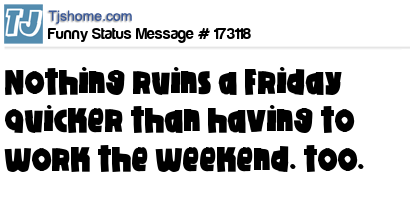 X says Nothing ruins a Friday quicker than having to work the weekend. too.