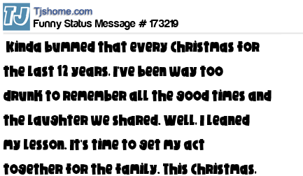 - # 82814 Every Christmas for the last 15 years, I've been too drunk to remember the good times and the laughter we shared. Well, enough is enough. It's time to get my act together. This Christmas, I'm hiring a cameraman.