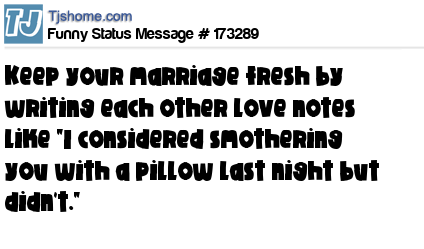 X says Keep your marriage fresh by writing each other love notes like "I considered smothering you with a pillow last night but didn't."
