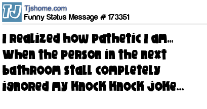 X says I realized how pathetic I am,,, When the person in the next bathroom stall completely ignored my knock knock joke...