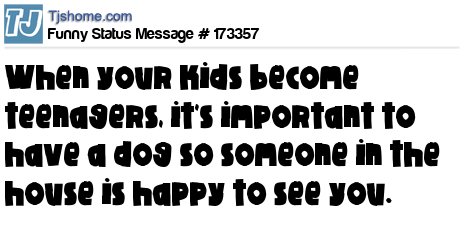 X says When your kids become teenagers, it's important to have a dog so someone in the house is happy to see you.