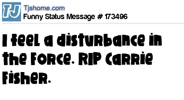X says I feel a disturbance in the Force. RIP Carrie Fisher.