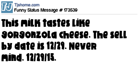 X This milk tastes like gorgonzola cheese. The sell by date is 12/29. Never mind. 12/29/15.