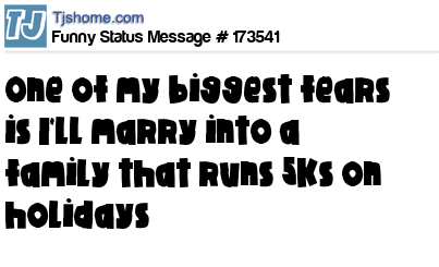 X says One of my biggest fears is I'll marry into a family that runs 5Ks on holidays