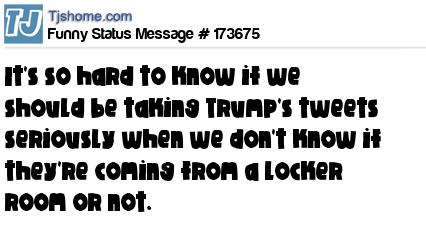 X says It's so hard to know if we should be taking Trump's tweets seriously when we don't know if they're coming from a locker room or not.