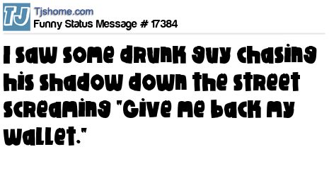 X I saw some drunk guy chasing his shadow down the street screaming "Give me back my wallet."