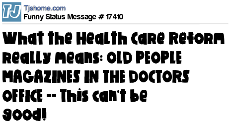 X is What the Health Care Reform really means: OLD PEOPLE MAGAZINES IN THE DOCTORS OFFICE -- This can't be good!