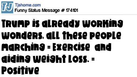 X says Trump is already working wonders, all these people marching = Exercise and aiding weight loss. = Positive