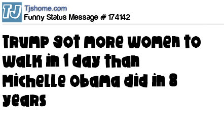 - # 174105 It just occurred to me that Trump got more fat women out walking in one day than Michelle Obama did in eight years.