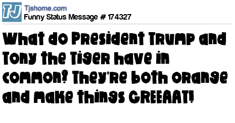 X What do President Trump and Tony the Tiger have in common? They're both orange and make things GREEAAT!