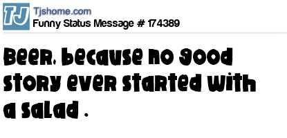 - # 139299 Alcohol: Because no great story ever started with someone eating salad.