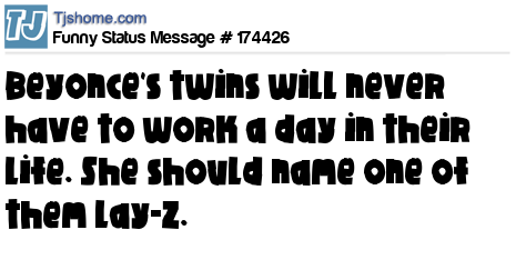 X says Beyonce's twins will never have to work a day in their life. She should name one of them Lay-Z.