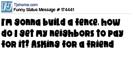 - # 174294 We are building a fence and I'm gonna make my neighbors pay for it.