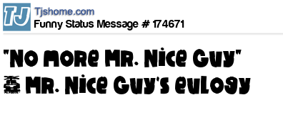 X "No more Mr. Nice Guy" ~ Mr. Nice Guy's eulogy