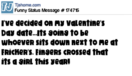 X I've decided on my Valentine's Day date...Its going to be whoever sits down next to me at Fricker's. Fingers crossed that its a girl this year!