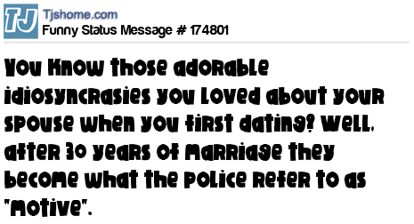 - # 161422 Know those adorable idiosyncrasies you loved when first dating? After 20 years of marriage they become what the police refer to as "motive".