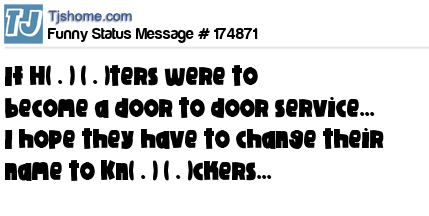 X says if H( . ) ( . )ters were to become a door to door service... I hope they have to change their name to Kn( . ) ( . )ckers...