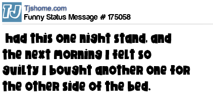 - # 91688 I had this one night stand, and the next morning I felt so guilty I bought another one for the other side of the bed.