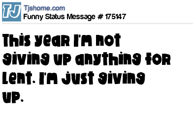 X says This year I'm not giving up anything for Lent. I'm just giving up.