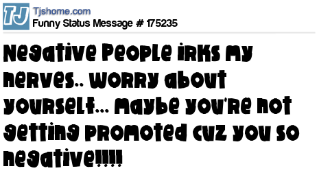 X says Negative People irks my nerves.. worry about yourself... maybe you're not getting promoted cuz you so negative!!!!