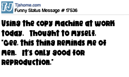 X was using the copy machine at work today. Thought to myself, "Gee, this thing reminds me of men. It's only good for reproduction."