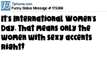X says It's International Women's Day. That means only the women with sexy accents right?
