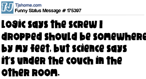 X says Logic says the screw I dropped should be somewhere by my feet, but science says it's under the couch in the other room.