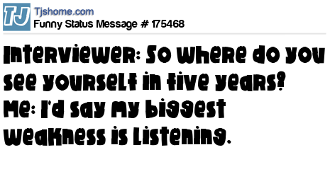 - # 202750 Interviewer: “What is your biggest weakness?” Me: “Answering job interview questions correctly.”