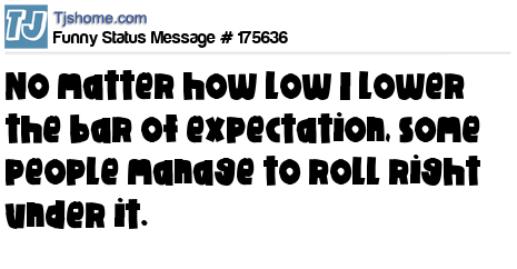 X says No matter how low I lower the bar of expectation, some people manage to roll right under it.