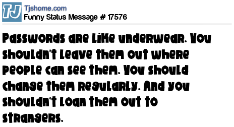 X says Passwords are like underwear. You shouldn't leave them out where people can see them. You should change them regularly. And you shouldn't loan them out to strangers.