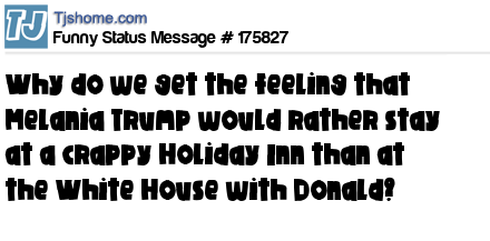 X says Why do we get the feeling that Melania Trump would rather stay at a crappy Holiday Inn than at the White House with Donald?