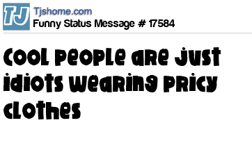 - # 89842 If you buy clothes that everyone is buying, your trying way to hard to fit in and be cool.. Buy stuff that you think is cool, if you follow trends your a f*****g poser!