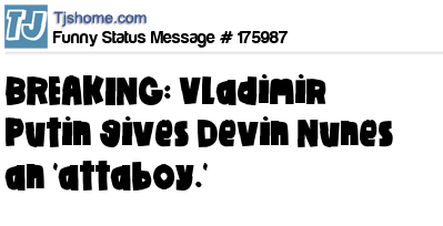X says BREAKING: Vladimir Putin gives Devin Nunes an 'attaboy.'