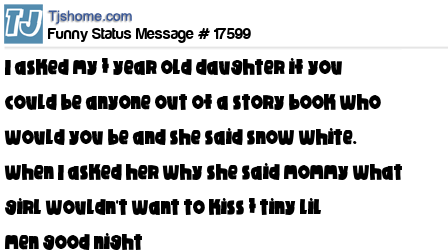 - # 69176 A five year old asked, “Mommy, was daddy ever inside you like I was?” Mommy replied, “Yes, but only for a minute.”