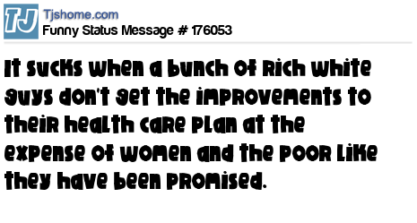X says It sucks when a bunch of rich white guys don't get the improvements to their health care plan at the expense of women and the poor like they have been promised.