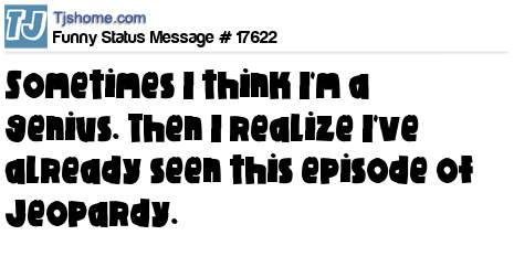 X  Sometimes I think I'm a genius. Then I realize I've already seen this episode of Jeopardy.