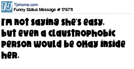 X says I'm not saying she's easy, but even a claustrophobic person would be okay inside her.