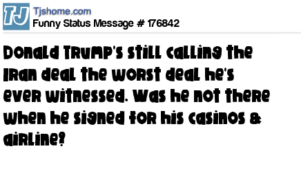 X says Donald Trump's still calling the Iran deal the worst deal he's ever witnessed. Was he not there when he signed for his casinos & airline?