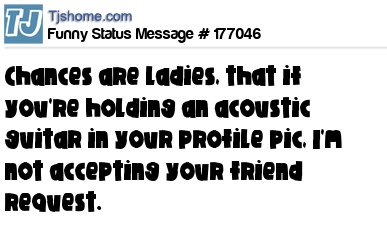 X says Chances are ladies, that if you're holding an acoustic guitar in your profile pic, I'm not accepting your friend request.
