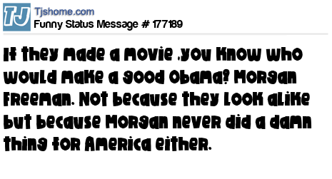 X says If they made a movie ,you know who would make a good Obama? Morgan Freeman. Not because they look alike but because Morgan never did a damn thing for America either.