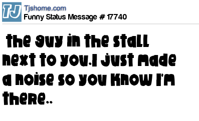- # 67982 Was in the public rest room - I was barely sitting down when I heard a voice in the other stall: "Hi, how are you?"... Me: embarrassed, "Doin' fine!" Stall: "So what are you up to?"... Me: "Uhhh, I'm like you, just sitting here." Stall: "Can I come over?"