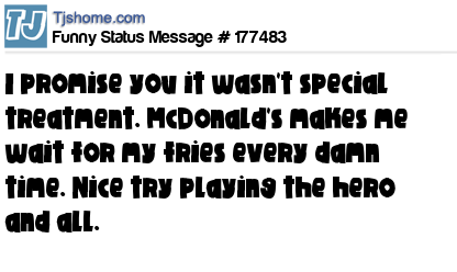 X says I promise you it wasn't special treatment. McDonald's makes me wait for my fries every damn time. Nice try playing the hero and all.