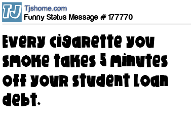 X says Every cigarette you smoke takes 5 minutes off your student loan debt.