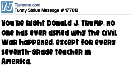 X is You're right Donald J. Trump, no one has ever asked why the Civil War happened, except for every seventh-grade teacher in America.