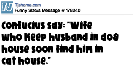 - # 14971 CONFUCIUS SAYS: "Wife who put husband in dog house soon find him in cat house." hehehe!!!!!!